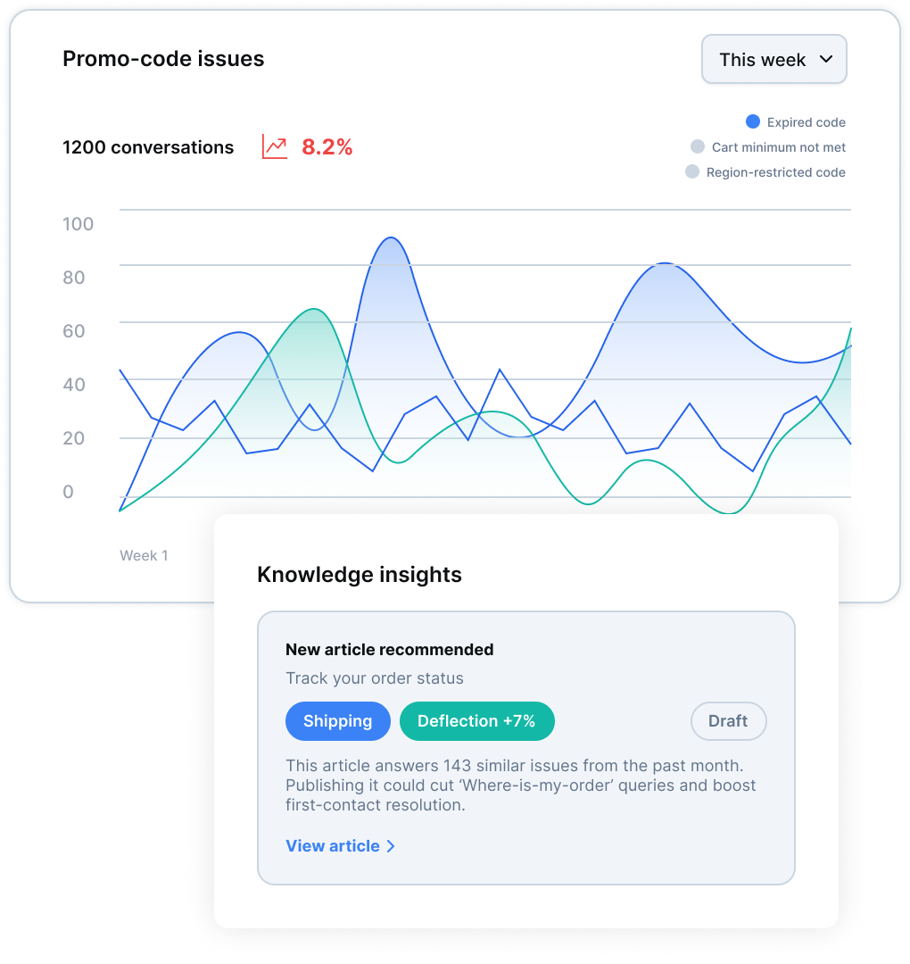 Knowledge gap detection and experiments to improve self-serve deflection and optimize AI agents at scale.